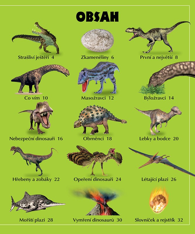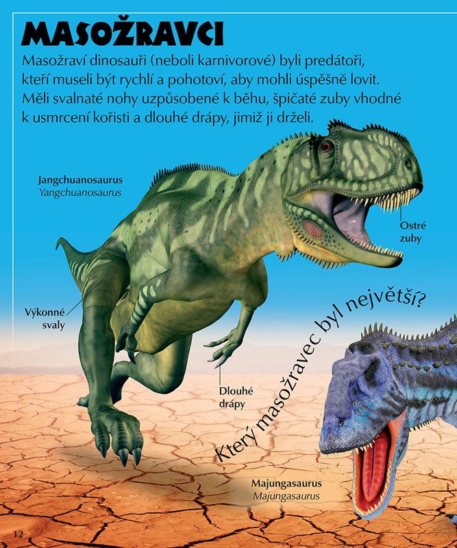 Tato poutavá a zábavná kniha je plná zajímavostí o úžasném světě velkých dinosaurů, od hrozivého velociraptora a tyranosaura po obrněného ankylosaura či triceratopse.