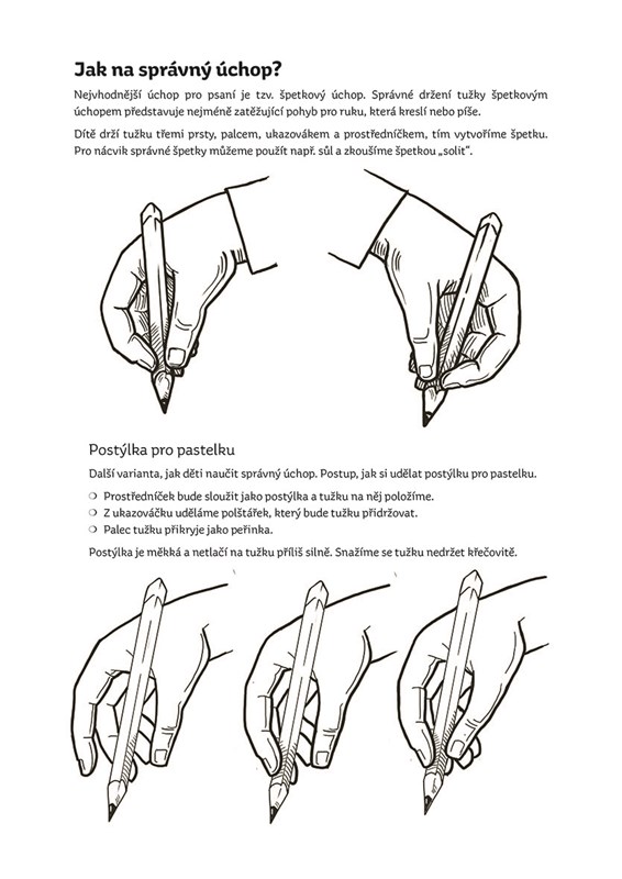 Pracovní sešit je určen především malým předškolákům, pracovat s ním však mohou i děti mladší, které se s grafomotorikou teprve seznamují. Každá stránka nabízí vícero druhů práce, z nichž si rodič může vybírat a motivovat tak k činnosti i děti, které kreslení příliš nevyhledávají. Nechybějí zde užitečné rady, jak správně držet tužku, jak si uvolnit ruku před psaním a jak se společně bavit a hezky si užít společně strávené chvilky. Pro snadnější orientaci při práci jsou v sešitu používány ikonky znázorňující druh úkolu.