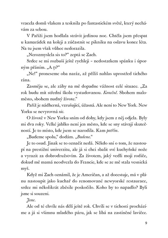 O rok později přijíždí Margot do New Yorku. Je odhodlaná splnit si své sny – rozjet kariéru v rušné manhattanské restauraci a najít Zacha. Jenže sliby dané ve stínu Eiffelovky vypadají v záři neonových světel na Times Square úplně jinak. Hledání Zacha věnuje Margot celý podzim, ale bez úspěchu. Jelikož stále věří, že tehdy v Paříži našla spřízněnou duši, nechce to vzdát, a tak požádá o pomoc sympatického kolegu z restaurace, Bena. Co když má však vesmír jiný plán?