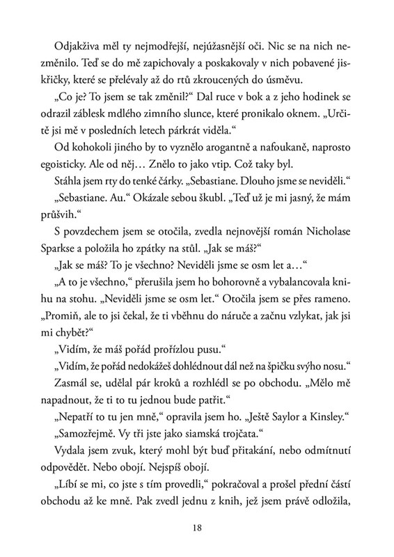 Holleyin poklidný život udělá pořádný kotrmelec, když do jejího malého knihkupectví v Montaně zavítá baseballový hráč Sebastian Stone. Nejde ani tak o to, že Seb je sportovní superstar, ale spíš o to, že jí kdysi zlomil srdce. A teď shání doprovod na svatbu své sestry. Holley k vlastnímu šoku jeho nabídku přijme a najednou stojí před zapeklitým problémem: Zvládne předstírat, že je do něj zakoukaná? Věci se však začnou vyvíjet tak, že přetvářka možná nakonec nebude potřeba.