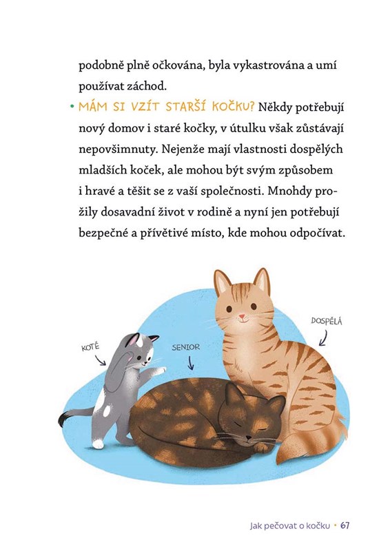 - Získáš rady, jak si kočku správně vybrat, adoptovat z útulku a jak o ni pečovat.