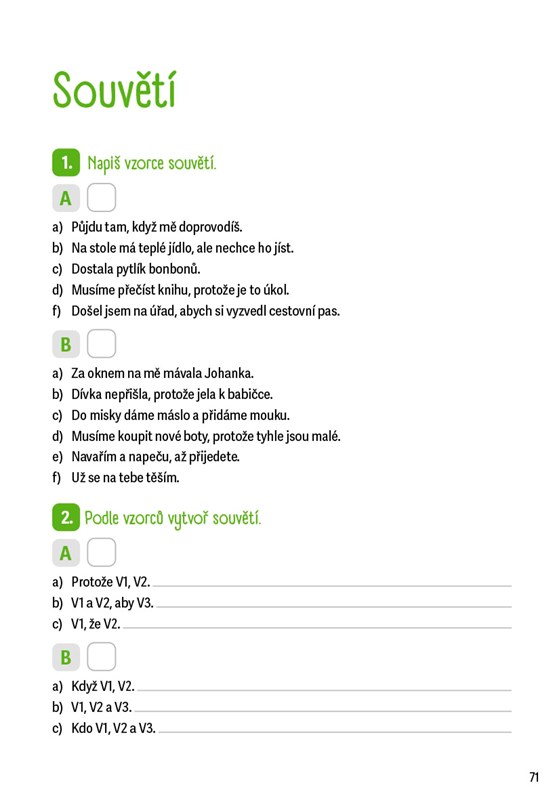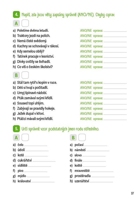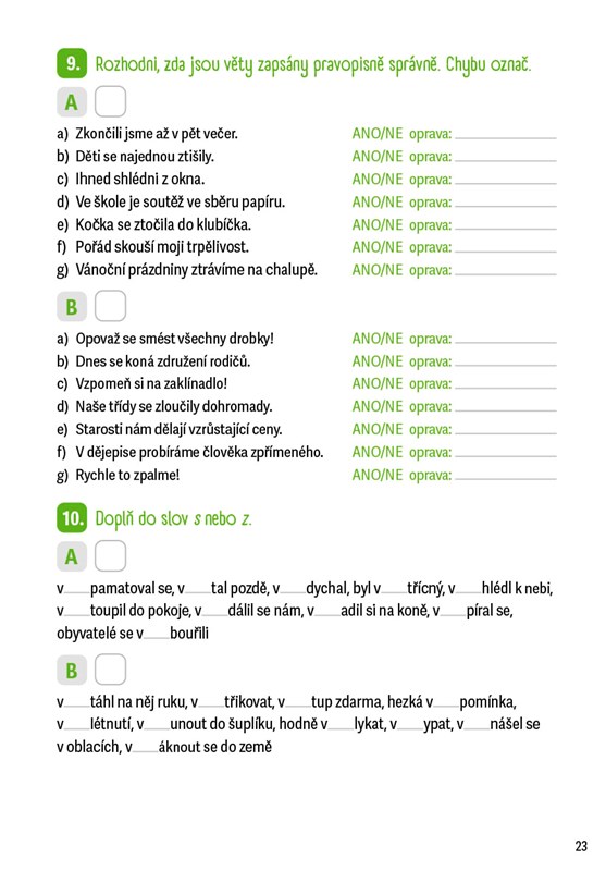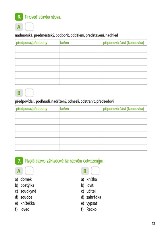 Hledáte krátká a zábavná zadání, která nezaberou moc času, ale skvěle poslouží k procvičení látky, která dětem nejde nebo si ji potřebují upevnit? Pak sáhněte po naší cvičebnici! Najdete zde úkoly na procvičování psaní předpon, vyjmenovaných slov, slovních druhů, koncovek podstatných jmen, pravopisu přídavných jmen, zájmen, číslovek i sloves. Jejich vyplnění nezabere více než pět až deset minut. Některé úlohy jsou rozděleny na část A a B, takže je mohou využít nejen rodiče při domácí přípravě, ale i učitelé při psaní testů.