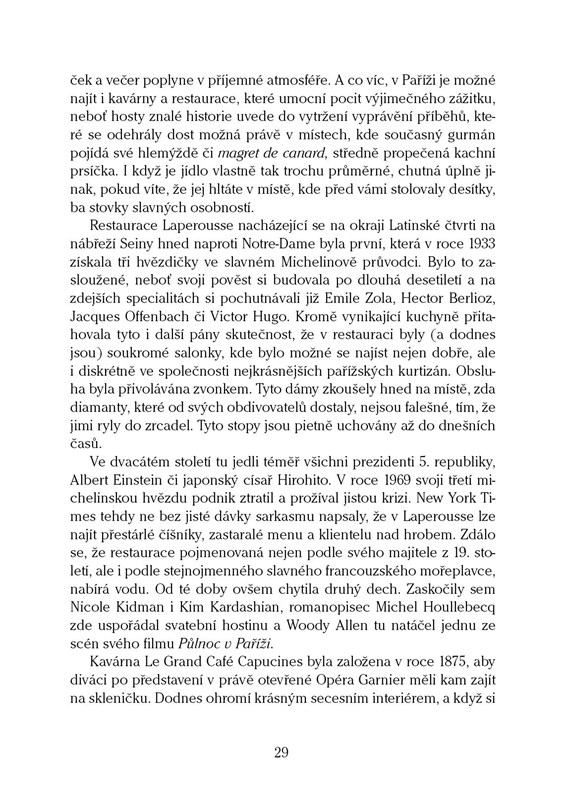 Zajímavosti z minulosti i současnosti Paříže čerpá autor z literatury, ale zejména z vlastní zkušenosti průvodce, protože jak sám říká: „Jen průvodce nejlépe ví, co turisty ve Francii skutečně zajímá.“ Kniha zcela určitě potěší všechny, kdo mají rádi Francii, chtějí si oživit své vzpomínky nebo se plánují do této krásné země vydat. Čtenáři se v ní dozví, proč jedli Pařížané krysy, proč je Paříž považována za město lásky, i o temných dobách okupace Německem.