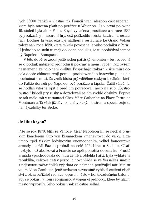 Po úspěšných knihách Kruté příběhy sladké Francie I. a II, a cesta do hlubin Italovy duše (a žaludku) přichází plzeňský spisovatel a průvodce Zbyněk Kašpar s další knihou pro milovníky Francie, která je tentokrát věnována Paříži.
