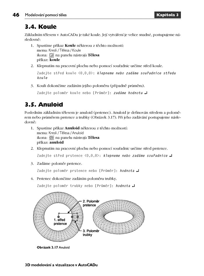 Na rostoucí zájem o porozumění principům a technikám 3D modelování a vizualizace reaguje tato publikace ve formě výukového průvodce, určená čtenářům, kteří již ovládají základy 2D kreslení a chtějí postoupit v možnostech AutoCADu, nejrozšířenějšího programu pro počítačové navrhování, k další, realističtější dimenzi. 3D modelování není obtížnější než 2D kreslení, znalost kreslení v rovině je jediným předpokladem pro pochopení problematiky v celém rozsahu.