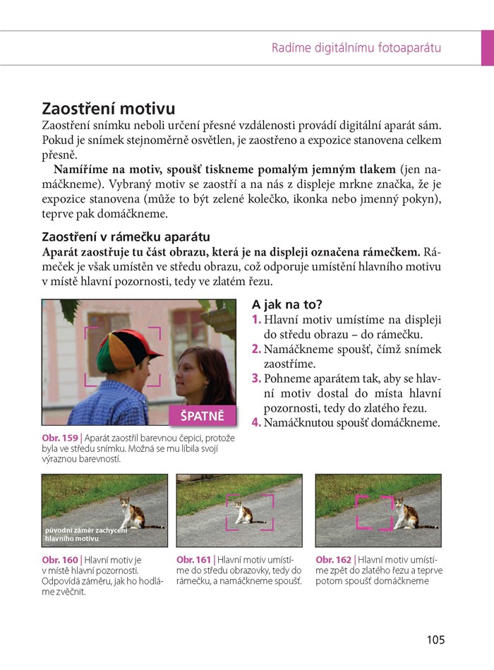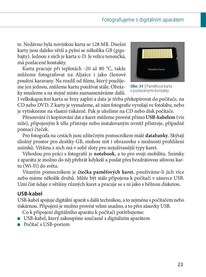 - Knihu provází téměř 400 barevných fotografií, které jednak přibližují digitální aparát, zejména jsou však návodem, jak tvořit pěkné a zdařilé fotografie.