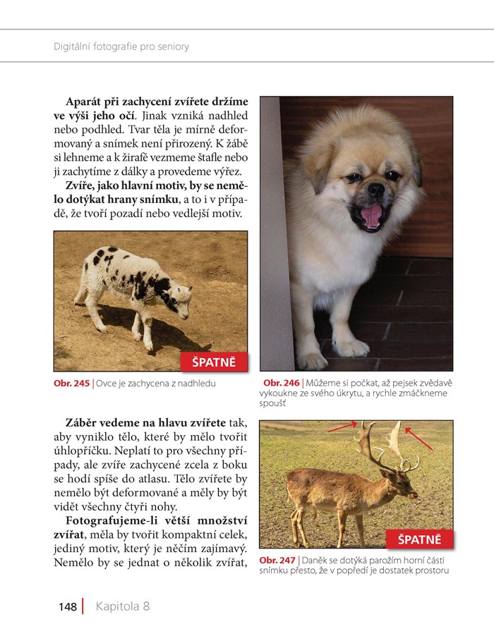Kniha provází čtenáře od prvního setkání s digitálním aparátem, jeho ovládáním i jednotlivými funkcemi, přes tvůrčí fotografické kouzlení až k úpravám i archivování fotografií v počítači. Srozumitelný výklad je přizpůsoben potřebám seniorů, nevynechává žádný důležitý krok, vyhýbá se zdlouhavým i náhlým skokům, látku odměřuje v přiměřených dávkách, aby se čtenář neztratil v záplavě novinek. Díky popisu řešení problémů vás zároveň při fotografování již nikdy nic nezaskočí.