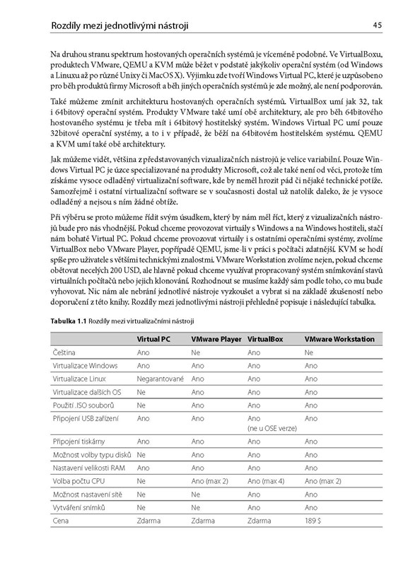 V přílohách navíc naleznete přehledně řazené informace o jednotlivých virtualizačních nástrojích a odkazy na další zdroje informací.