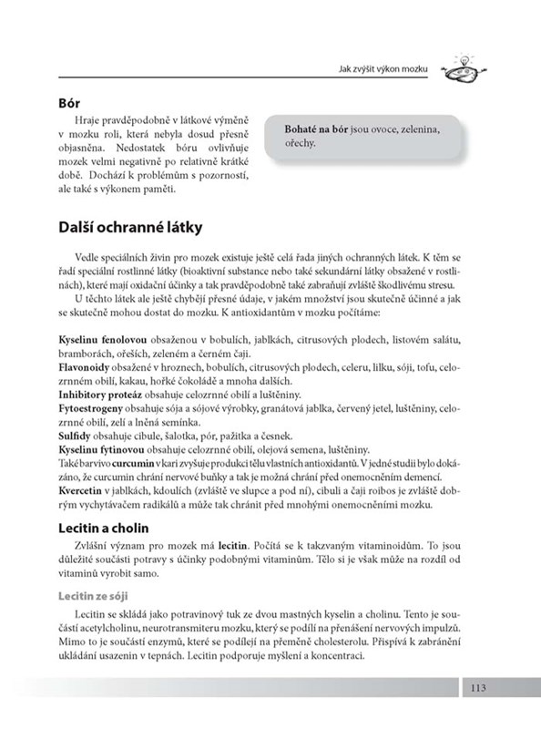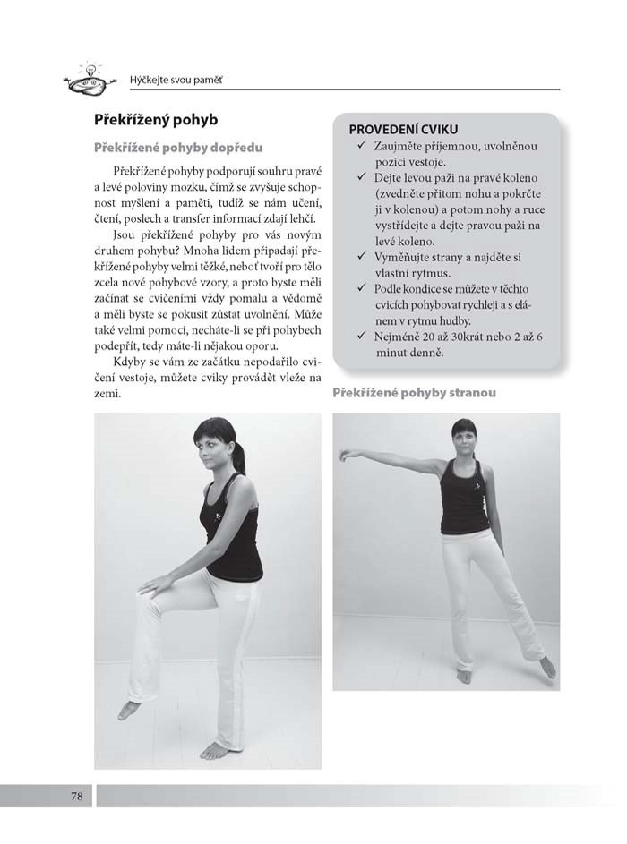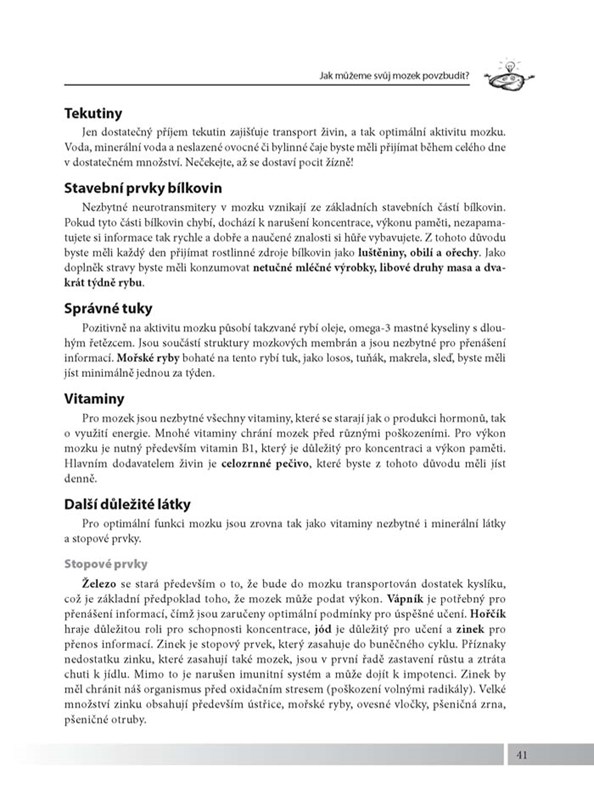 - Kineziologická cvičení na zapojení obou mozkových hemisfér, testy na zrychlení mozkové činnosti a mnoho dalších rad a tipů.