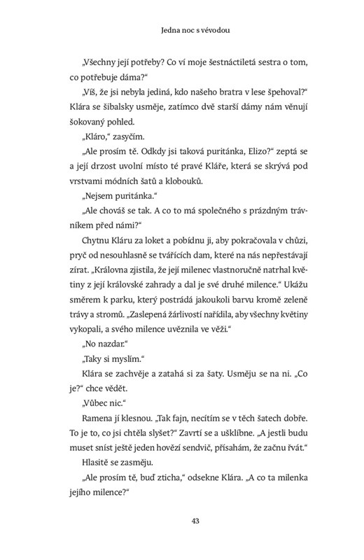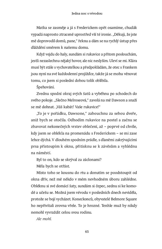 Eliza Melroseová si vždycky vážila své nezávislosti. A když s rodinou žila na venkově, bylo snadné vyklouznout na půlnoční projížďku, psát články do otcových novin a jinak si dělat, co se jí zlíbí. Ale teď, když se přestěhovali do centra módního Londýna, je každý její krok pod drobnohledem a odsuzován. A co hůř, její otec chce, aby se vdala a zaujala ve společnosti odpovídající místo.