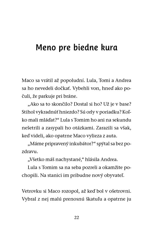 „Prosím???“ Lula na mamu neveriacky vypleštila oči. Vedela, že o vykrádačoch orlích hniezd kolujú medzi ochranármi hotové legendy, no myslela si, že všetky patria do hlbokej minulosti.