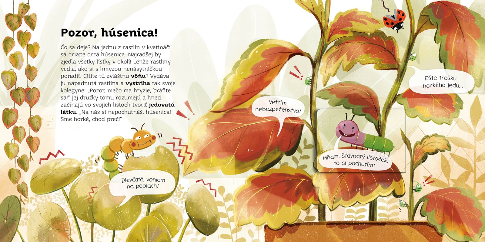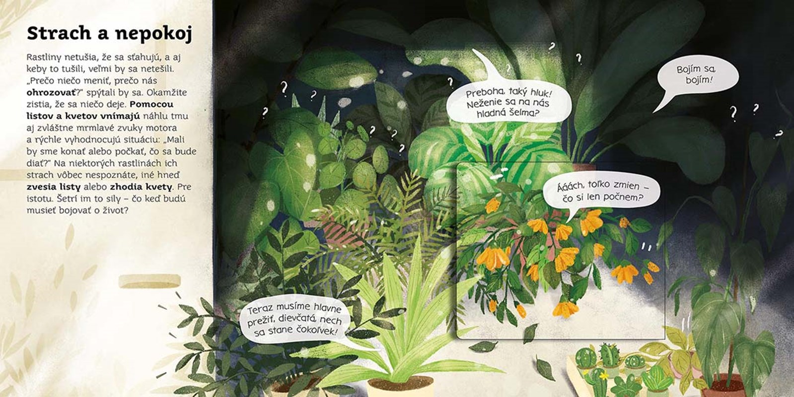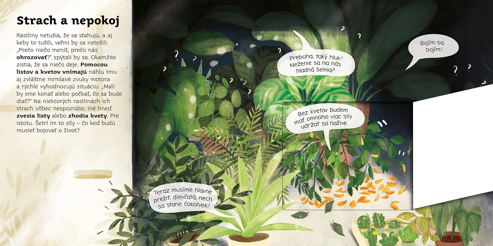 Napadlo ti niekedy, že rastliny, ktoré nás obklopujú v lese, v parku, na ulici, a tak nádherne nám vedia ozdobiť byt, sú poriadne zhovorčivé? S našou knižkou sa dozvieš, že aj keď rastliny nehovoria ľudskou rečou, vedia sa navzájom porozprávať o tom, čo zažili, vystríhať sa, chlácholiť sa, a dokonca si v prípade núdze aj pomáhajú. Otváracie okienka na každej dvojstrane ti pomôžu uvedomiť si, ako sa spolu rastliny rozprávajú bez slov. Vďaka tejto knihe sa už v rastlinnej ríši nikdy nestratíš!