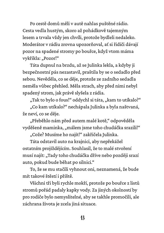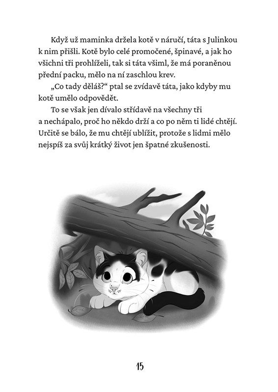 Maruška žije poklidný kočičí život u své rodinky. Jednoho letního bouřkového dne do jejího života vpadne malé černobílé kotě, které převrátí všechno vzhůru nohama. Maruška se nechce o svůj domov a rodinku jen tak podělit a nemíní dát kotěti nic zadarmo. Postupně vyměkne a snaží se kotě naučit správné kočičí způsoby, a nakonec je to právě malé kotě, které naučí velkou kočku spoustu důležitých věcí a také to, že kočičí život může být jakýkoliv, ale rozhodně ne nudný.