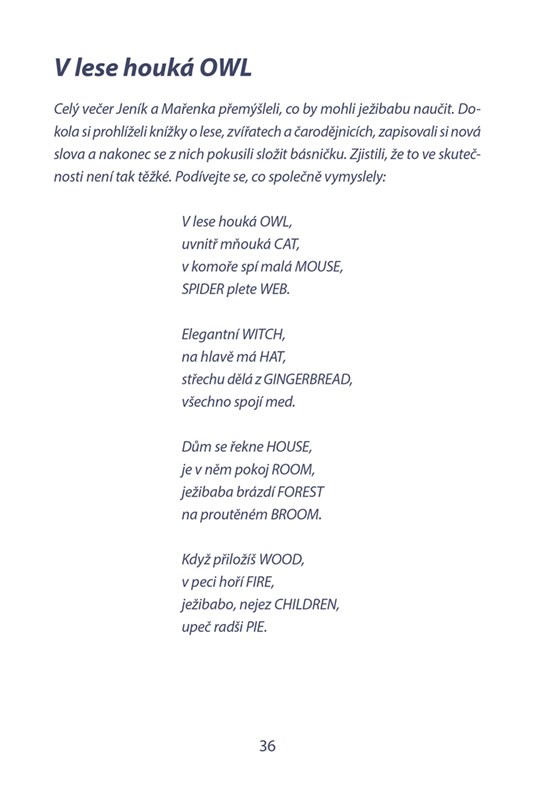 Tento příběh o ježibabě Jeníčkovi a Mařence je úplně jiný než ten, který znáte z pohádek. Madam ježibaba totiž nestrká děti do pece a neláká je na perníček. Všichni se spolu učí anglicky!
