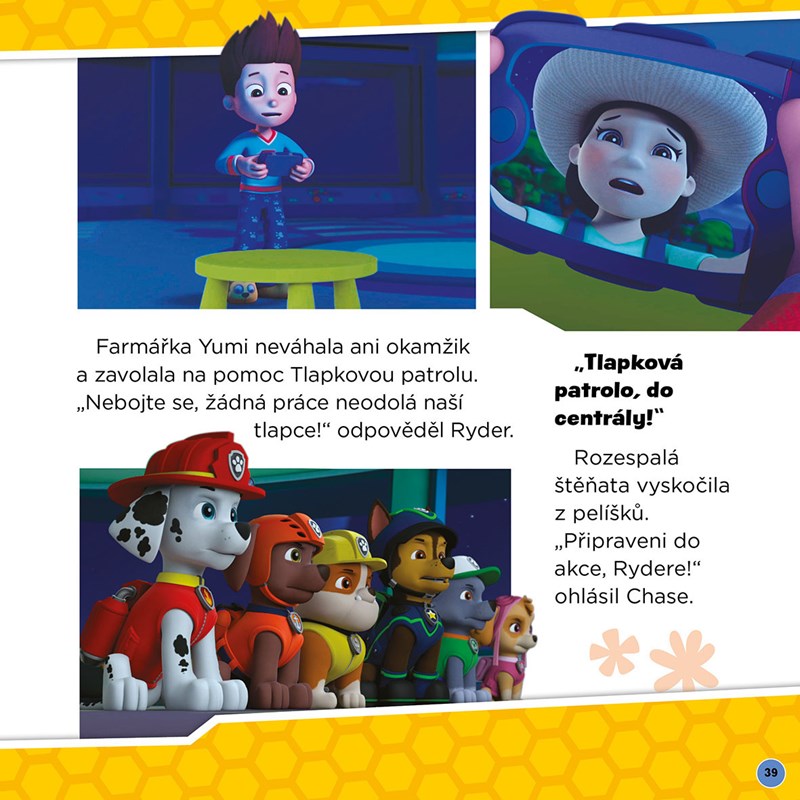 Oblíbená záchranářská štěňata nastupují do akce a čeká je další výzva! Odvážní hrdinové budou pomáhat zvířátkům v nouzi. V napínavých příbězích zjistíte, jak sehraný tým našel ztracené medvídě a vypátral včely, které uletěly z úlu. Ale protože dobrých skutků není nikdy dost, zažijete s tlapkami i plno dobrodružství při počítání tučňáků na Ledovém pobřeží nebo záchraně neposedného kotěte. Na nic nečekejte a pusťte se do pomáhání s Tlapkovou patrolou!