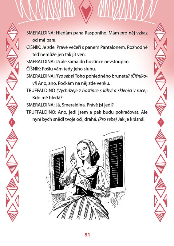 Komedie je psaná zjednodušenou italštinou tak, aby vyhovovala potřebám začínajícího studenta. Na každé stránce naleznete český zrcadlový překlad, cvičení na konci knihy zase slouží k procvičení získaných znalostí.