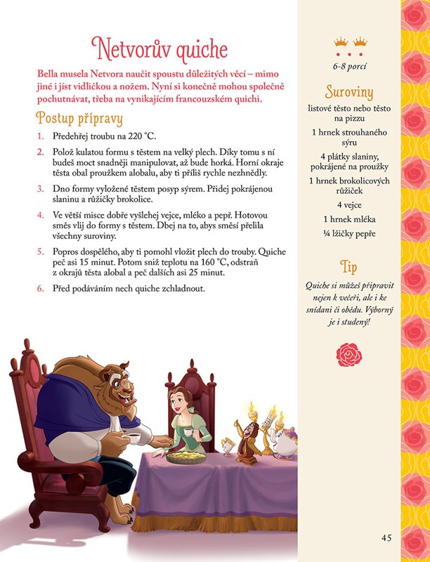 Jste připraveni čarovat v kuchyni? S těmito zábavnými a snadnými recepty zvládnou i začínající kuchaři uvařit kouzelně lákavé pokrmy, jako jsou vejce na pánvičce podle Lociky, polévka sedmi trpaslíků, kuřecí prsty kmotřiček víl nebo košíčky s mořskými želvičkami! Všechny recepty jsou chutné, zdravé a nutričně vyvážené. Přesně tak, jak to mají malé princezny rády!