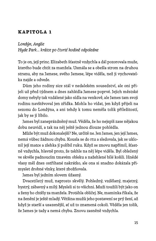 Elizabeth je dcerou hraběte a ví, co se od ní čeká – poslušnost a dokonalost. V hloubi duše však touží po jediném: utéct sešněrovanému aristokratickému životu. Díky dědictví po kmotře se jí v den jejích narozenin naskytne šance. Tehdy se však vrátí Robert, přítel z dětství, kterého neviděla čtrnáct let. Robert Elizabeth nenávidí… Dá-li se ovšem nenávidět někdo, bez koho nemůžete žít. Celá léta se ji marně snažil dostat z hlavy. Můžete ale přestat myslet na někoho, kdo si podmanil vaše srdce? Další romance ze série Žhavá pokušení vypráví příběh vášnivého vztahu v dobových kulisách Anglie a Ameriky první poloviny devatenáctého století.