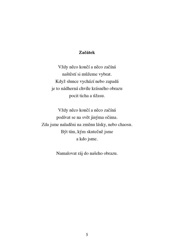 Sbírka básní plná postřehů o životě takovém, jakým v daném okamžiku pro autorku byl. Střípky inspirace z hloubi jejího srdce.