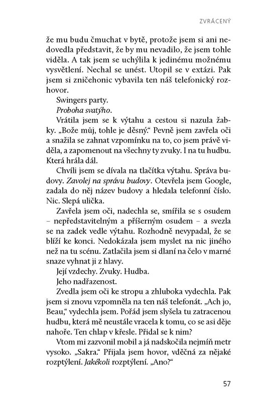 Potom, co Beau nechala svého snoubence u oltáře a odešla od miamské policie, nemá její život žádný směr. Smrt její matky byla označena za nehodu. Beau tomu nevěří, ale nemá důkazy o opaku. Sžírá ji bezmoc a vztek. Dokud nepotká Jamese, muže, který se zdá být stejně rozervaný jako ona. A přestože působí chladně, probouzí v ní city. Potěšení. A touhu, které se nedá odolat. Beau však netuší, že James stojí před osudovým rozhodnutím: Buď se jí svěří se svým nejtemnějším tajemstvím, nebo ji bude muset zabít.