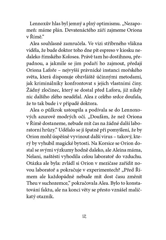 Alea získala zpět své magické schopnosti a je znovu dívkou moře – má ale velké obavy o Theu. Kam ji doktor Orion odvedl? Co má v plánu a jakou zvláštní roli sehraje Tess, aby ho zastavila? Nebo je možné, že klíčem k vítězství je nový člen posádky? V moři povstává prastará síla, ale Alfa cru může najít cestu ke svým novým spojencům jen přes benátské uličky. Podaří se přátelům porazit Oriona dříve, než stihne v oceánech rozšířit virus útočící na magické bytosti?
