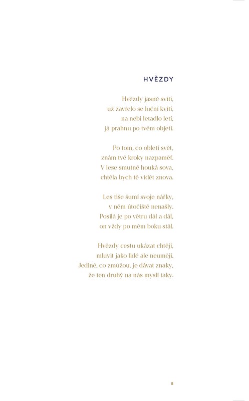 Sbírka básní o první lásce, která nikdy úplně nevyhasne. O vzpomínkách, co pálí jako staré dopisy ...