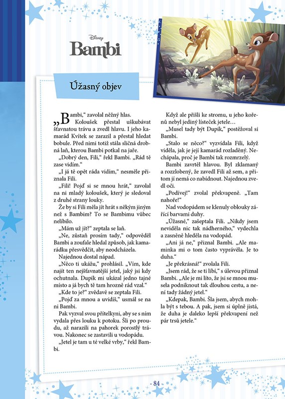 Nezapomenutelné příběhy ožívají v knížce plné pohádek na motivy slavných animovaných filmů! Vstupte do Disneyho kouzelného světa a zažijte nová dobrodružství s oblíbenými hrdiny. Pomozte Mauglímu uniknout před lstivým tygrem Šér Chánem, prozkoumejte tajemství na dně oceánu s mořskou vílou Ariel i hluboký les s kolouškem Bambim, zjistěte, jak si Simba našel nové přátele, a přečtěte si, jaké narozeninové překvapení připravily myšky Popelce. Vydejte se na úžasnou cestu plnou fantazie a užijte si společné chvíle u pohádek, které baví malé i velké.