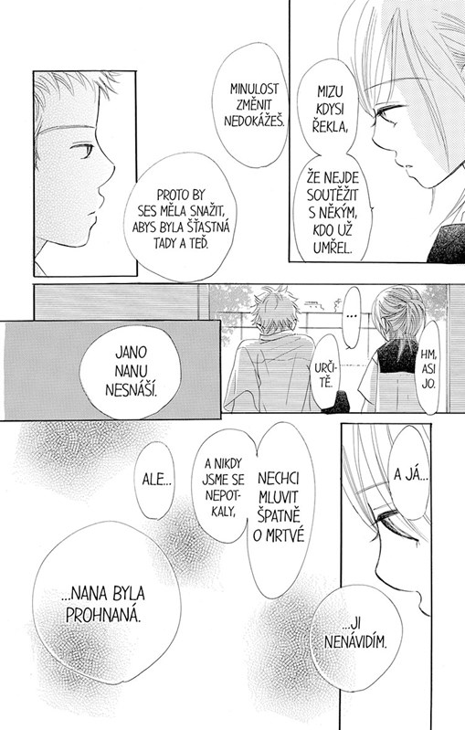 Když už si Nanami myslí, že Jana konečně pochopila, zase je všechno jinak. Všichni kolem ní se perou s prvními láskami a ona sama je nejistá a vystrašená, protože má Jano spoustu zkušeností. Místy se vynořuje Janova nešťastná minulost… a pak zase mizí. Jano ji utěšuje slovy „neprohrajeme s minulostí“, „žijme tady a teď“, ale Nanami jenom slova nestačí.