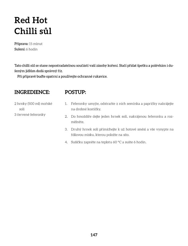 Mysleli jste si, že v domácí sušičce vykouzlíte přinejlepším pár klasických křížal a nasušíte houby? Nechte se touhle knížkou přesvědčit o opaku a vklouzněte do světa domácího sušení, který vám otevírá netušené možnosti. Zjistěte, jak zužitkovat přebytky letní úrody kreativními způsoby. Naučte se dělat ovocné placky, sladké i slané chipsy, sušené maso, bylinkové soli nebo krásně barevné bylinkové prášky. A pochutnejte si i na různých krekrech nebo lahodně jemných pusinkách. Povedou vás srozumitelné texty a nádherné fotografie, které vám budou skvělou inspirací.