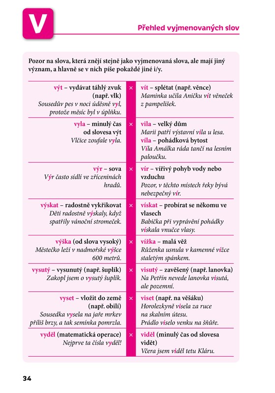 * Upozornění na podobně znějící slova s jiným významem a další chytáky