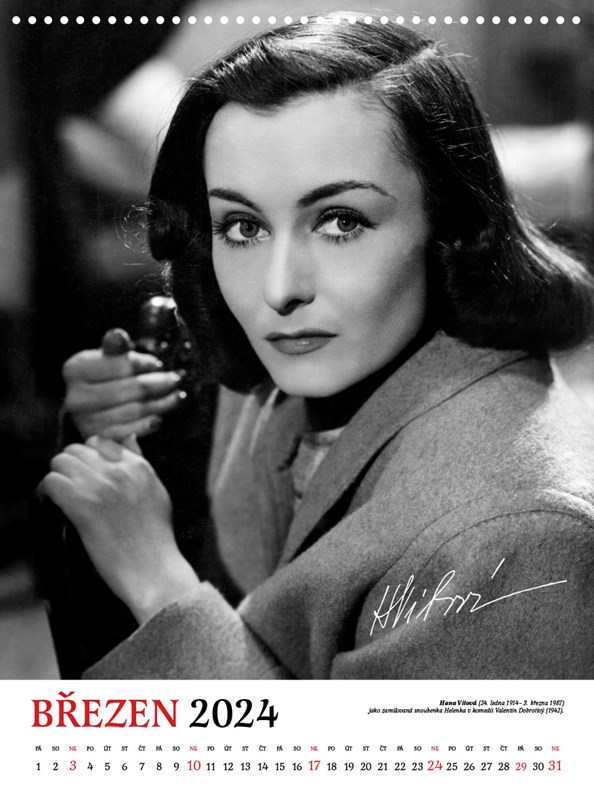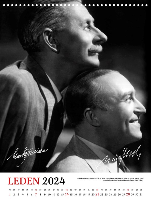 Rok 2024 tak můžete strávit po boku těch nejzářivějších hvězd filmového plátna. Společnost Vám budou dělat Vlasta Burian, Oldřich Nový, Nataša Gollová, Hana Vítová, Jiřina Štěpničková, Zita Kabátová, Adina Mandlová, Antonie Nedošinská, Theodor Pištěk, Lída Baarová, Rudolf Hrušínský, Marie Glázrová a Jaroslav Marvan. Věříme, že se jejich jedinečné portréty stanou ozdobou vašeho bytu či kanceláře.
