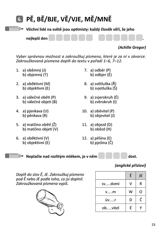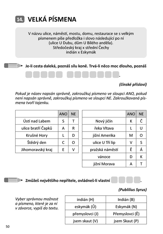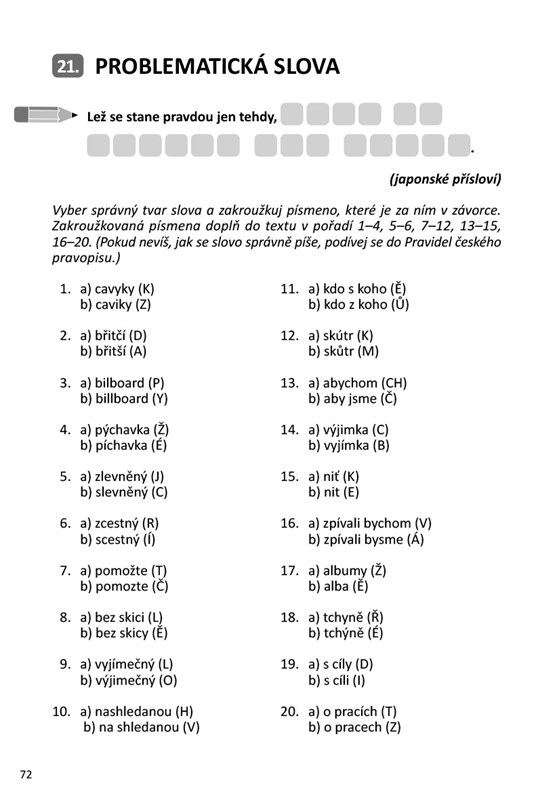 Aby procvičování bylo co nejpříjemnější, rozhodli jsme se pravopisná pravidla obléknout do atraktivního kabátku. Když správně vyřešíš cvičení, křížovky a různé typy doplňovaček, čeká na tebe zajímavý citát nebo přísloví.