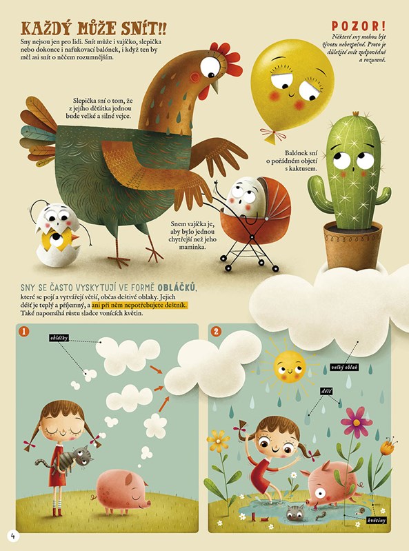 Dozvíte se, proč rybka sní o zlatém rybáři nebo zda sní sklenice, a pokud ano, tak o čem. Proč si dům přeje, aby Martinka přestala hrát na bicí, kam chce dolézt šneček ze strany 2, proč vajíčko touží po tom, aby bylo chytřejší než jeho maminka…