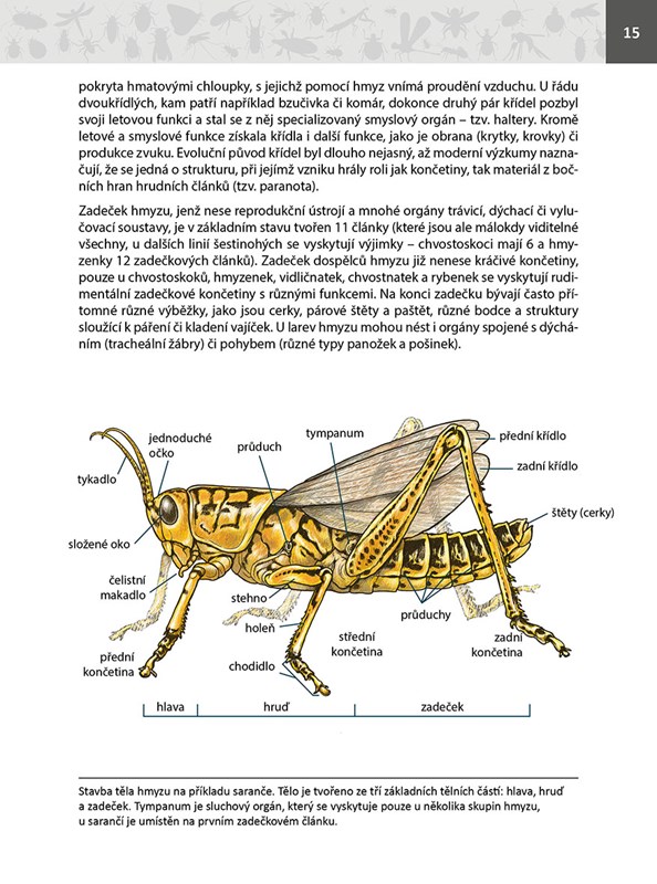 Odborníci z České společnosti entomologické a Univerzity Karlovy vám svižnou, naučně-populární formou představují většinu základních skupin hmyzu a šestinohých České republiky. Čtenář zde najde informace a zajímavosti nejen o více jak 320 druzích a 160 skupinách hmyzu, ale v úvodních kapitolách se navíc doví o základních milnících evoluce hmyzu, o jeho tělesné stavbě či příčinách jeho úbytku.