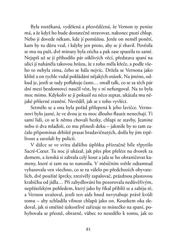 Vernon, zkrachovalý obchodník s gramodeskami, to svým stoickým postojem vůči proměnám moderního světa dopracoval až mezi pestrou komunitu pařížských bezdomovců. K jeho skromnému majetku však stále patří „pod vlivem“ nahraná zpověď zesnulé hudební star, ale i mnohá kamarádství ze starých časů. A tak se po jeho stopách vydá nesourodá pátrací skupinka tvořená postavami, se kterými jsme měli čest už v první ze tří částí románu. Patří do ní nejen Vernonovi kamarádi z mládí, domácí násilník, frustrovaná single úřednice a nespokojený xenofob, ale i bývalá pornohvězda, lesbická hackerka nebo přísná mladá muslimka. Spolu pročesávají parky a odlehlé čtvrti, hledají Subutexe a nalézají kouzlo přátelství a nový způsob života. Co s nimi všemi bude, co bude s nahrávkami a co v nich vlastně zpěvák sdělil světu?
