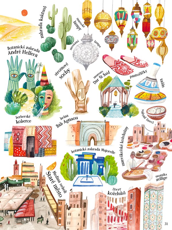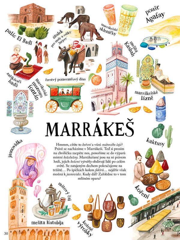 Vydejte se na cestu kolem světa nejmalebnějšími světovými městy. Deštivý Londýn, rozkvetlé Kjóto i horkou, rozpálenou Káhiru v něm budete mít jako na dlani. Projeďte se na palubě červeného doubledeckeru, kličkujte davem v dobrodružném tuk-tuku a před cestou na zasněžený sever raději předem podrbejte všechna roztomilá ouška psího spřežení. Brouzdejte historickými uličkami, obdivujte starobylé památky i divy moderní architektury a jednu po druhé ochutnávejte místní dobroty… Odkudpak pochází slavné croissanty? Ve kterém městě ušili první džíny? A kde spatřila světlo světa první žvýkačka nebo Nobelova cena? Všechno se dozvíte v našem bohatě ilustrovaném průvodci.