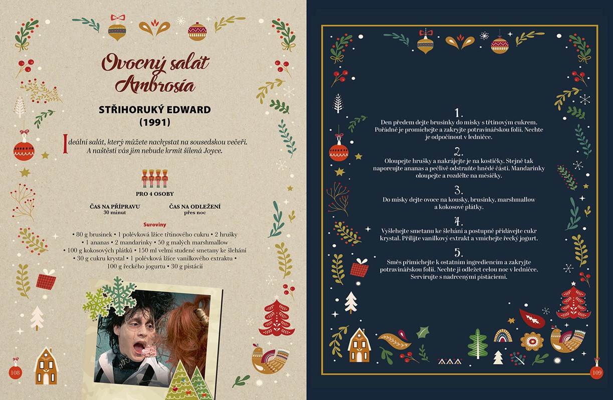 V této kuchařce najdete 50 báječných receptů inspirovaných známými vánočními filmy – od komedií přes fantasy až po oblíbené romantické filmy!