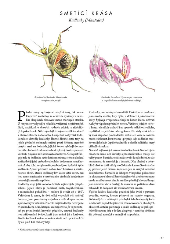 Hmyz… je všude kolem nás. Představuje běžnou součást našich životů, kterou vnímáme, třeba když nám u ucha zabzučí otravný komár nebo před očima přelétne barevný motýl. Ale víte, že hmyz představuje tu nejpočetnější skupinu živočichů na Zemi? Že jej najdeme takřka všude? Od rozpálených pouští přes rozkvetlé louky, hluboké lesy, sladkovodní tůně a temnoty jeskyní až po hladiny oceánů? Hmyz roznáší nemoci, ale také opyluje naše pole a sady. Některé druhy škodí lesům, na druhé straně nás ale armáda hmyzích pomocníků před škůdci zároveň i chrání. Bez opylovačů by na Zemi nerostly květiny a bez všudypřítomného hmyzu by zpěvné ptactvo zahynulo hladem. Kniha, kterou držíte v ruce, vás zavede do říše drobných tvorů, kteří vás překvapí složitostí svého chování, ale i svými tvary a barvami. Mimořádně zajímavé texty našeho předního odborníka z oblasti entomologie, Jiřího Kolibáče, bohatě doplňují neméně působivé ilustrace manželů Dvorských. Odhalíte složité rituály námluv, dojemnou péči o potomstvo, triky opylovačů, organizaci hmyzích států, války o zdroje a svět vůní, barevných křídel i ostrých kusadel. Dozvíte se o těch největších i nejmenších a možná pochopíte, jak důležitý hmyz je. Jak pro lidstvo, tak pro život celé planety.