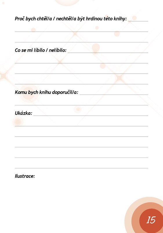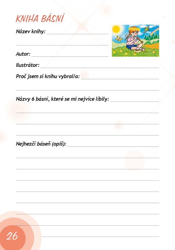 Zapsat takový záznam není úplně jednoduché, a proto je v deníku připravená osnova pro každý literární žánr, s nímž se děti na 1. stupni ZŠ potkají. Práci jim ještě usnadní ukázka jednoho zpracovaného zápisu. A nezapomněli jsme ani na to, že děti rády malují, a tak počítáme i s prostorem pro jejich vlastní ilustrace.