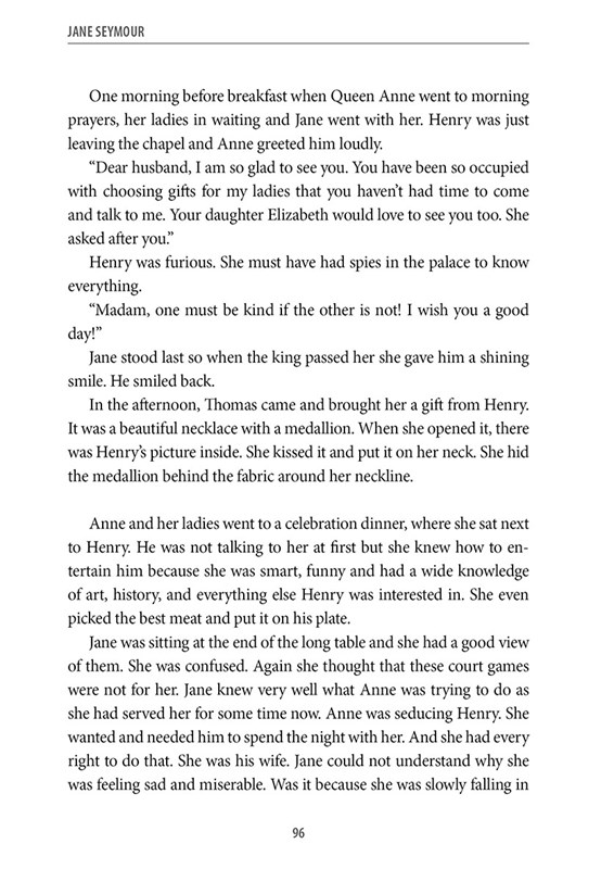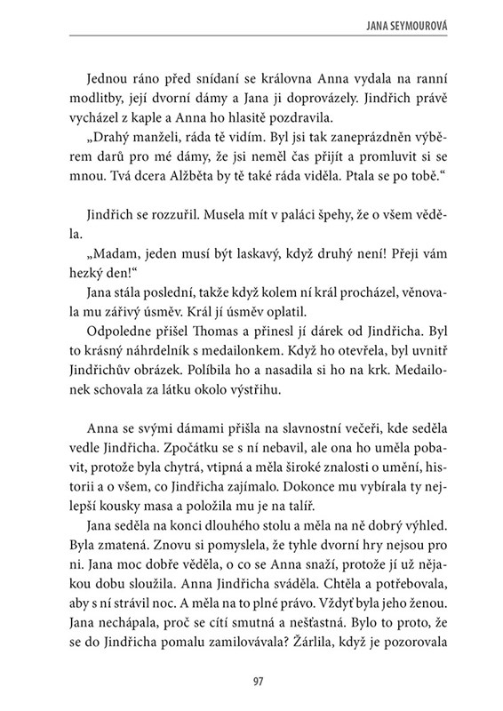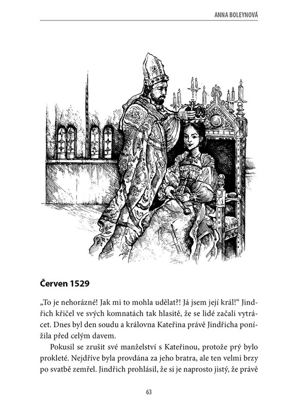 Nejen Anna Boleynová, jejíž příběh je u nás nejznámější, ale i Kateřina Aragonská, Jana Seymourová, Kateřina Howardová, Kateřina Parrová a Anna Klevská v knize nechávají nahlédnout do svých srdcí a myšlenek a ukazují, že být královnou neznamená jen nosit drahé šaty a šperky a zářit na plesech, to hlavní se odehrává za zdmi jejich komnat.