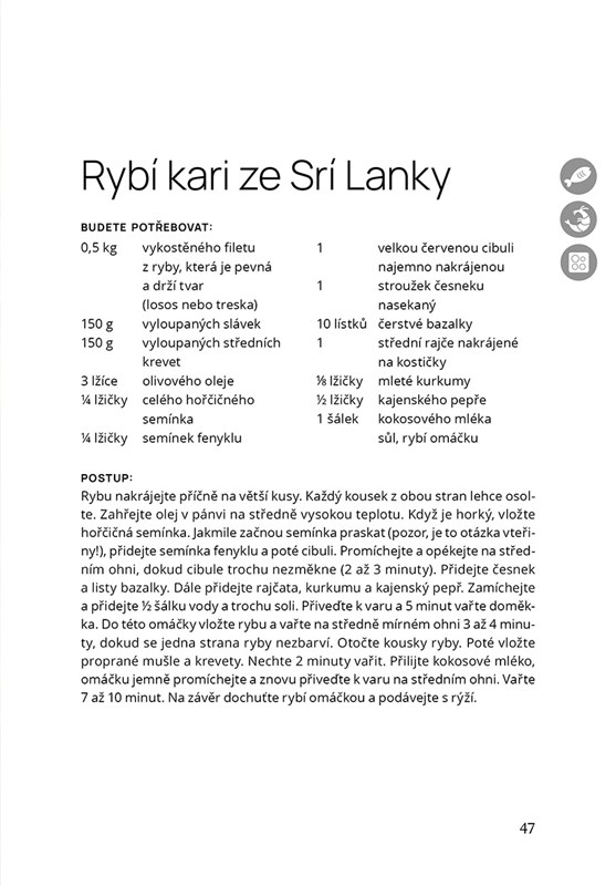 Kuchařka z rybářské chaty nabízí recepty na rychlou a snadnou přípravu mořských ryb a plodů moře. Recepty jsou tak jednoduché, že většinu z nich zvládnete uvařit na dvouvařiči. Kniha potěší kulináře, kteří by rádi zařadili ryby do jídelníčku častěji, ale také rybáře, kteří si v chatkách u moře chtějí uvařit svůj čerstvý úlovek – chutně, rychle, jednoduše. Recepty jsou doplněné fotografiemi a kořeněné krátkými příběhy z rybaření v Norsku. Dozvíte se například, která ryba bručí, co je rybí perla a jak zákeřná je oliheň.
