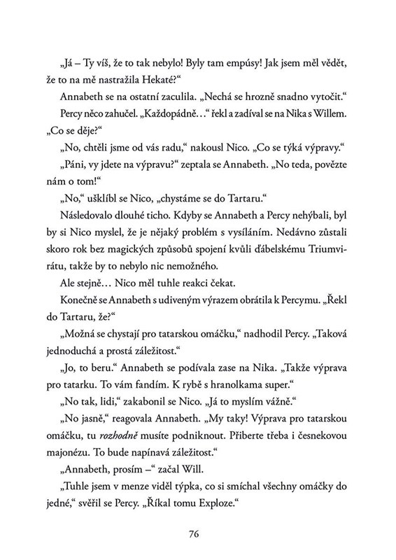 Nico di Angelo jako Hádův syn zažil víc hrůz než kdokoli jiný. Ale i jeho dny prosvětlil paprsek slunce v podobě milovaného Willa Solace, Apollónova syna. Spolu dokážou překonat jakoukoli překážku. Poslední dobou ale Nika volá hlas z Tartaru. Zdá se, že patří napravenému Titánovi, kterého Percy s Annabeth museli opustit během úniku z Hádovy říše. Nico se mu hodlá vydat na pomoc a Will trvá na tom, že ho doprovodí. Přežije ale bytost světla v nejtemnější části podsvětí? A čeho se tam Nico bude muset vzdát?