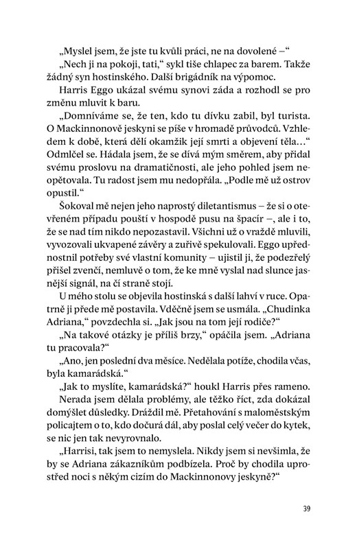 Další kniha, kterou je přečetla, je novinka od Helen Fieldsové Poslední na řadě. Soukromá vyšetřovatelka Sadie Levesqueová přijíždí z Kanady na ostrov Mull, aby na žádost nešťastných rodičů hledala jejich dceru, Adrianu Clarkovou. Najde ji, ale rozhodně ne tak, jak by si ji přála najít. Sadie se potkává s obyvateli ostrova, kteří nejsou zrovna přátelští a ona, aby odhalila vraha musí mezi semknutou komunitu proniknout. Největší překážkou je velitel místní policie Harris Eggo, který se Sadie vůbec nechce spolupracovat. Co a kdo se skrývá za krutou vraždou Adriany, které vypadá jako rituální smrt? A bude mrtvých dívek přibývat? Sadie musí vraha zastavit! Příběh se dobře odvíjí a je psán v ichformě. Jsem ráda, že jsem se během čtení se objeví v knize i dva muži ze série Dokonalých! Vůbec mi tam nevadili a spíš to bylo příjemné setkání. A pokud jste sérii dokonalých nečetli, tady to vůbec nevadí. Měla jsem však trochu problém se do knihy začíst, ale kolem půlky se to zlomilo a ten závěr mě dostal až na slzy! Helen umí psát příběhy tohoto typu a knihu můžu jen doporučit!