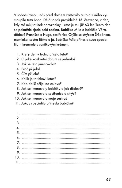 Speciální pedagožka Veronika Nešporová pracuje zejména se seniory, kteří trpí Alzheimerovou chorobou. Z osvědčených cvičení, která pro ně vytvořila, sestavila knihu, která má inspirovat, potrápit, pobavit, ale hlavně potrénovat hlavy nejen našich prarodičů. Jeden totiž nikdy neví, kdy si z nákupního seznamu zapamatuje sotva jeho polovinu.
