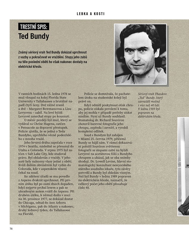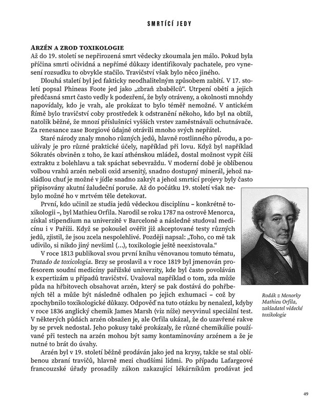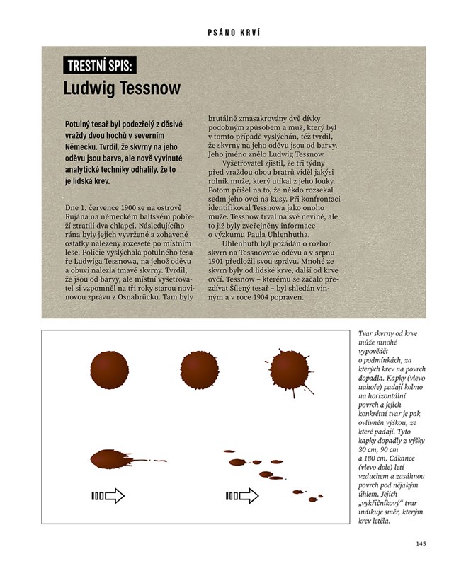 Chronologicky popisuje a hodnotí roli těch, kteří významně přispěli k rozvoji forenzních metod v nejrůznějších oblastech, jako jsou toxikologie, sérologie, otisky prstů, rekonstrukce obličeje, balistika, psychologický profil pachatelů nebo třeba DNA profilování.