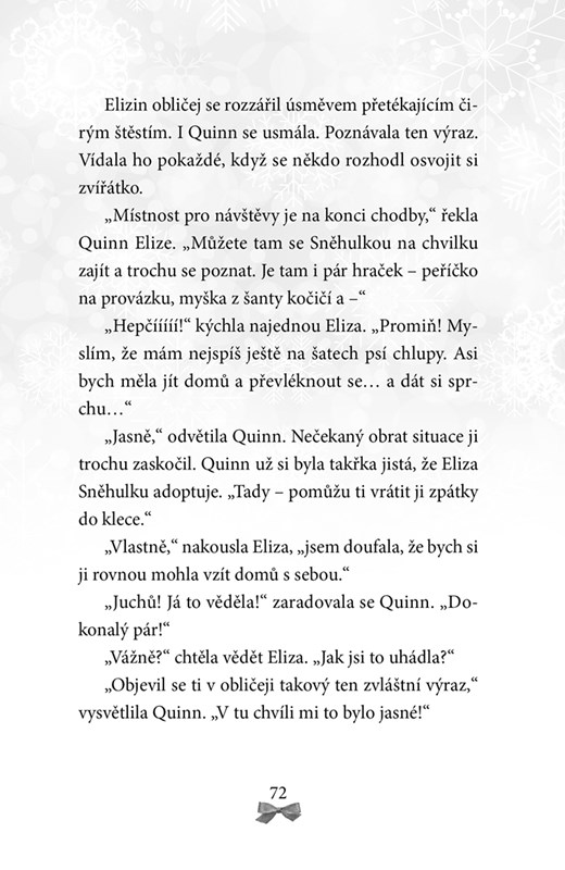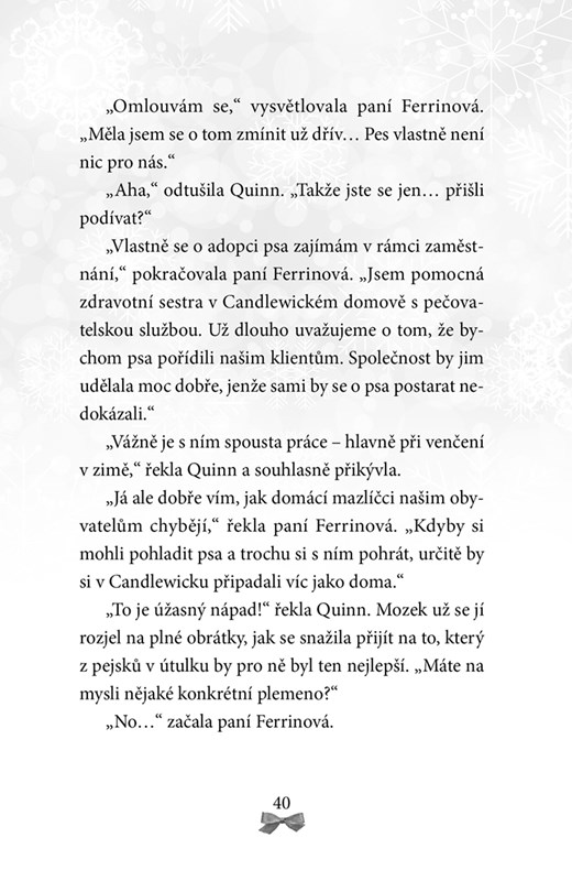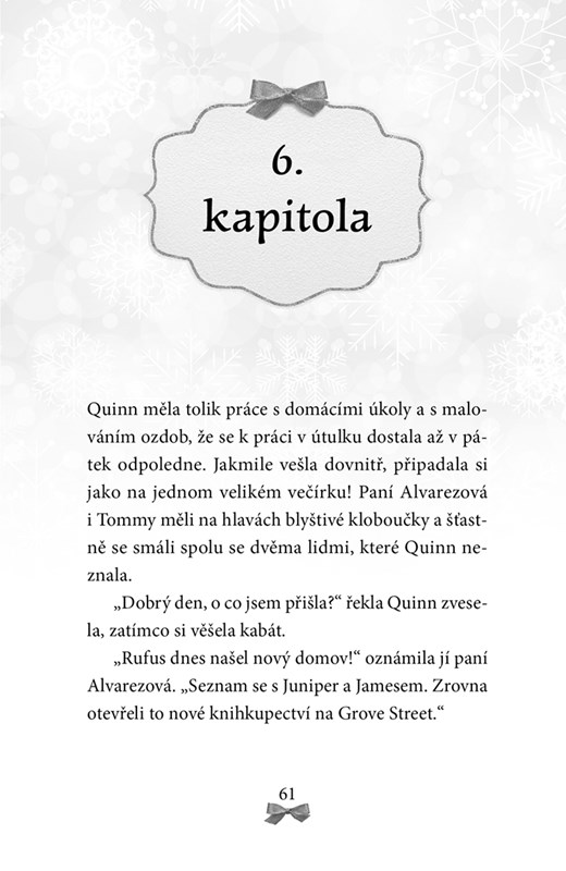 Na letošní Vánoce má Quinn Cooperová jasné plány. Prodejem vlastnoručně vyrobených ozdob podpořit umisťovací akci dvanácti psů a koček z místního útulku a také si vydělat peníze na letenku za svou nejlepší kamarádkou, která se loni v létě odstěhovala.
