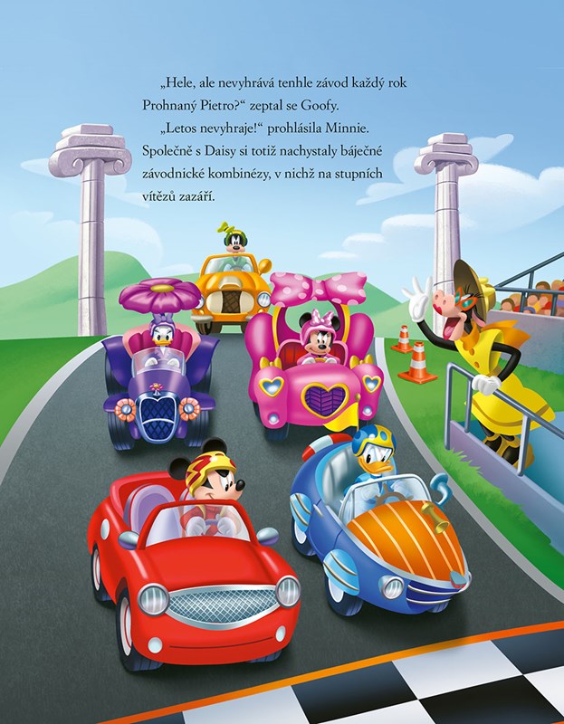Užijte si spoustu zábavy s veselými příhodami oblíbených animovaných hrdinů! V deseti parádních příbězích se na vás těší myšák Mickey s Minnie i jejich kamarádi Donald, Daisy, Goofy a Pluto. Vydejte se s nimi tábořit, vypravte se na úžasný výlet do Španělska, odstartujte v napínavém závodě nebo se staňte superhrdiny a zachraňte Klubík. Každá pohádka je právě tak dlouhá, abyste ji stihli během pěti minut dočíst až do šťastného konce.