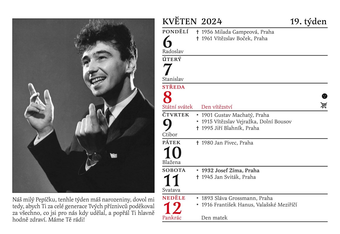 V pořadí již 16. Cibulkův kalendář pro pamětníky bude hostit vzácnou návštěvu. Po dobu dvaapadesáti týdnů se totiž budete moct těšit z dvaapadesáti unikátních fotografií a dvaapadesáti zajímavostí ze života hvězd pamětnických filmů, na něž bude vzpomínat herecká a pěvecká legenda Josefa Zíma (*1932).