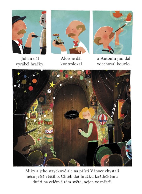 Mikuláš vypomáhá svým třem strýčkům v hračkářství, které je proslulé po celé zemi. Strýc Johan tam hračky vyrábí, strýc Alois je kontroluje a strýc Antonín jim vdechuje… jak jen se tomu odborně říká? Ach, ano – kouzlo! Jednoho dne, po pozoruhodném setkání s holčičkou Lotkou, se Miky rozhodne obdarovat hračkami všechny děti ve městě. Musí překonat řadu překážek, ale nakonec se vše podaří. A nejen to. Položí tím základ vánoční tradici, díky níž se všem dětem na světě jeden den v roce rozzáří oči radostí...