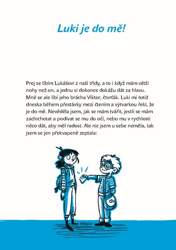 Devítiletá Laura má největší nohu ve třídě, geniálního malého bratra, dvě namyšlené nepřítelkyně-zákeřňačky a jednu super kámošku. Kromě toho dostane od spolužáka Lukiho modré srdce a moc neví, co si o tom myslet. Přes to přese všechno je Laura holka jako každá jiná: jednou se trápí a jednou směje. Tak už to asi u zamilovaných dívek bývá…
